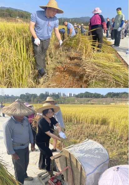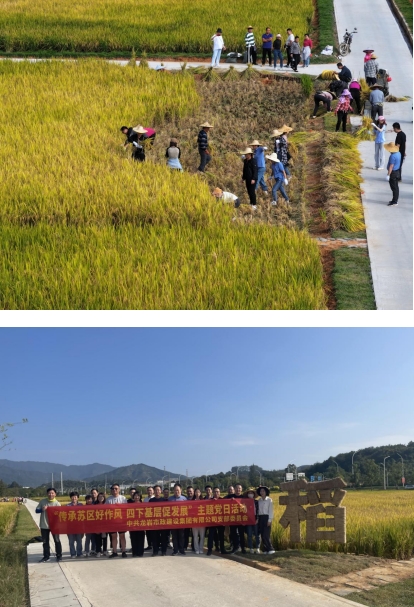 秋意漸寒,稻谷飄香。為深入貫徹習近平總書(shū)記關(guān)于實(shí)施鄉村振興戰略和糧食安全的重要論述,以學(xué)促干,推動(dòng)學(xué)習貫徹習近平新時(shí)代中國特色社會(huì )主義思想主題教育見(jiàn)行見(jiàn)效,2023年117上午,市政集團黨支部組織全體黨員干部龍州濕地項目開(kāi)展“傳承蘇區好作風(fēng) 四下基層促發(fā)展”主題黨日活動(dòng),全面助力稻谷收割工作。