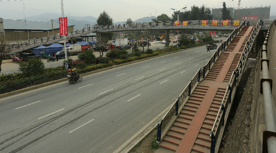 蓮莊路三期人行天橋位于蓮莊路三期工程k+737樁號處,跨越蓮莊路,連接龍鋼生活區及龍鋼市場(chǎng)、龍鋼幼兒園。保證該處居民的出行方便及安全。