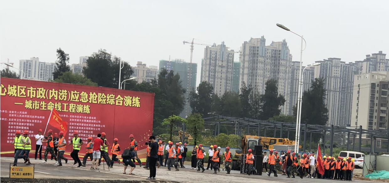 龍巖大道與工業(yè)路交叉口立交工程開(kāi)展市政(內澇)應急搶險綜合演練
