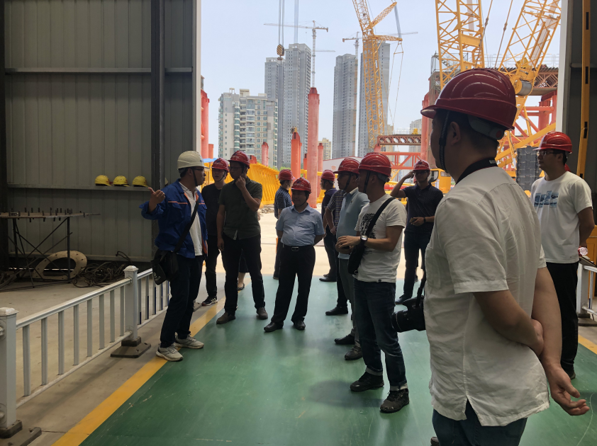 在考察學(xué)習期間,考察人員首先前往第一站中鐵大橋局七公司楊泗港青菱段斜拉橋工程項目,該項目負責人李斌帶領(lǐng)我司考察學(xué)習人員深入楊泗港大橋主塔施工現場(chǎng),參觀(guān)了該項目的主塔工程,項目負責人向大家詳細介紹了該項目的工程建設情況,該工程臨近鐵路,工程進(jìn)度任務(wù)極重,施工組織及施工技術(shù)要求高、施工難度大,并就相關(guān)問(wèn)題與大家進(jìn)行了現場(chǎng)交流。