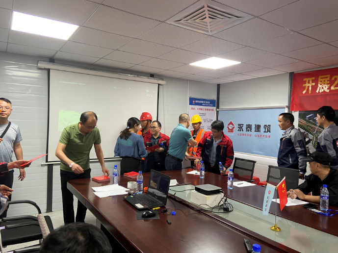 現場(chǎng),副總經(jīng)理俞桃蓮、修海金及總經(jīng)理助理章志強向項目部人員及工人現場(chǎng)分發(fā)安全知識手冊、安全知識圖冊等宣傳資料。